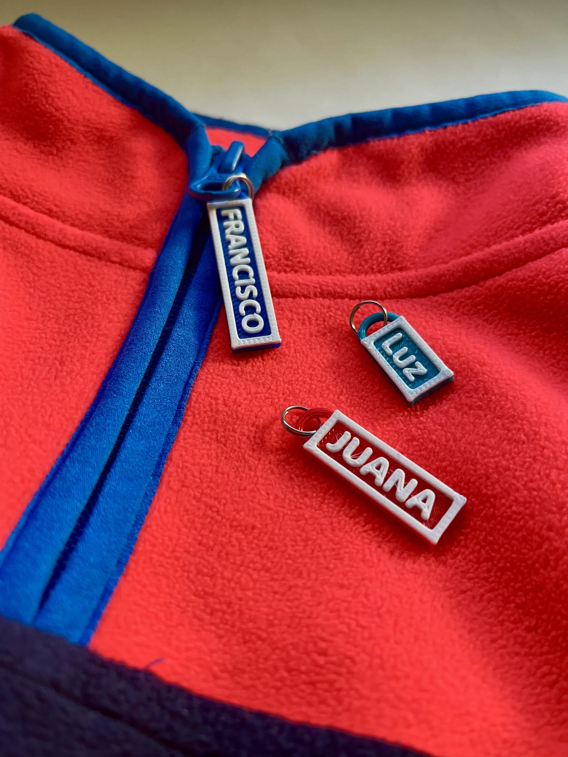 Al comprar es necesario elegir el color dentro de las opciones Azul y Blanco, ROJO y Blanco, Turquesa y Blanco, Violeta y blanco y escribir el nombre deseado en mayúscula. Verificar el nombre ya que se imprimirá tal como se registre.